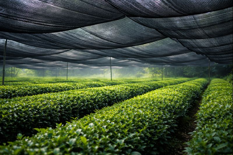 平織、ラッセル織、2層(黒黒・黒白)などから用途や栽培条件に応じて選択可能。碾茶・玉露・かぶせ茶など、目的に沿った被覆ができます。